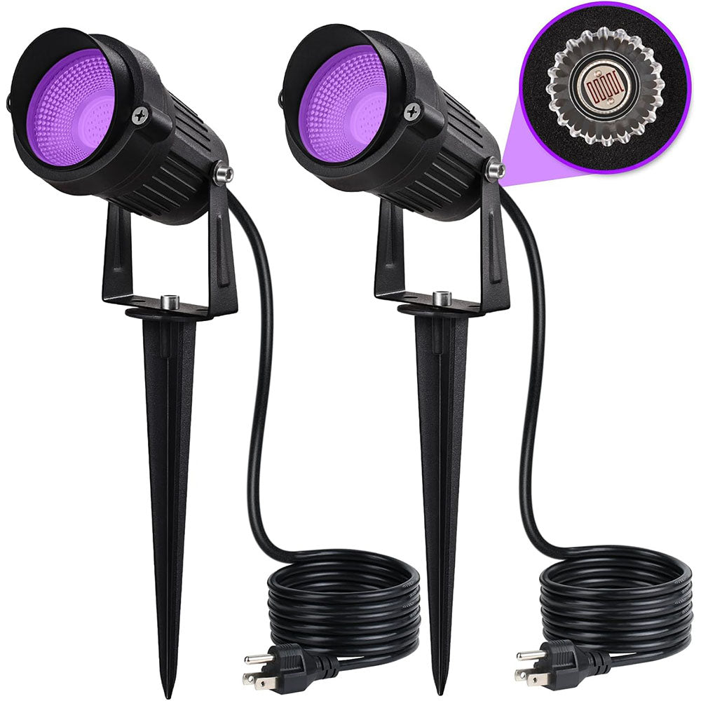 - Automatic Dusk to Dawn: LED black light spotlight with a built-in sensor for automatic on/off operation at dusk and dawn.