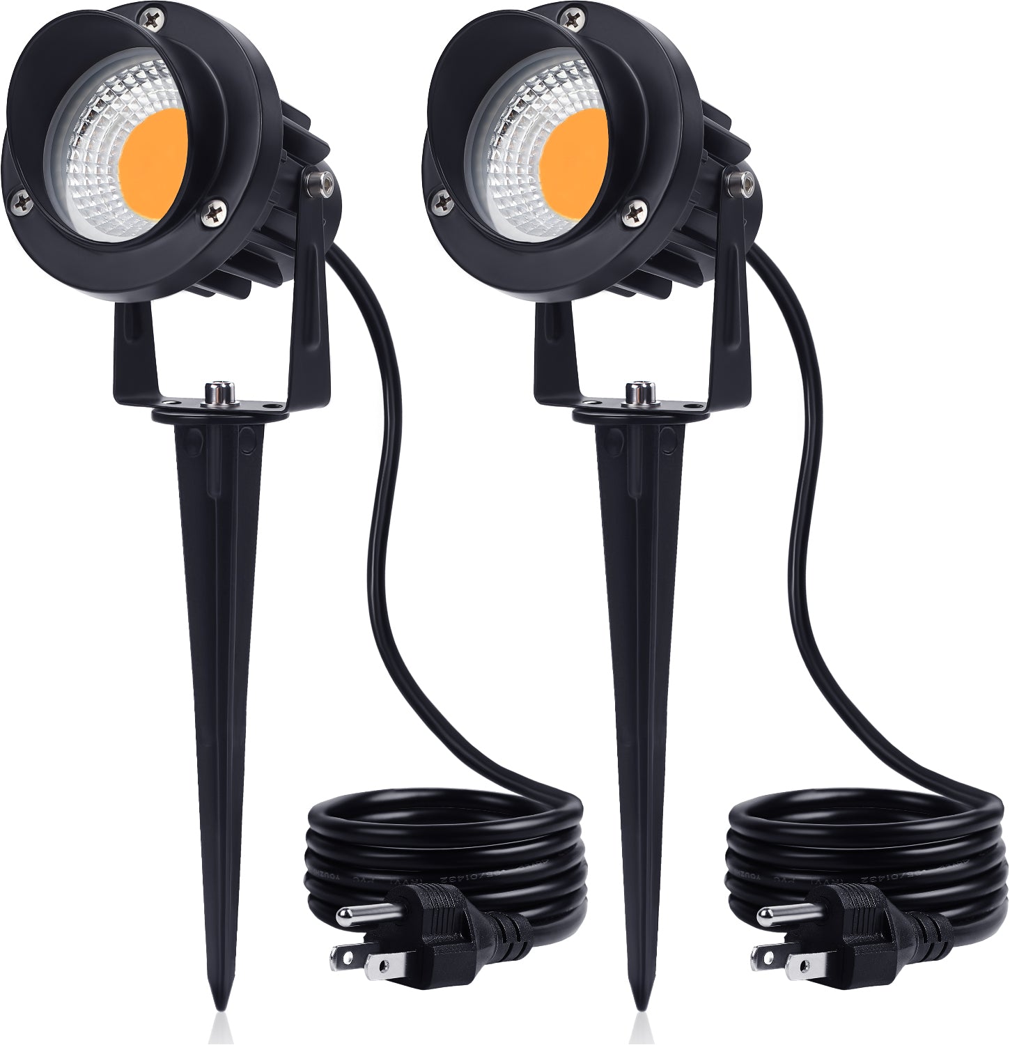 SUNVIE 15W Landscape Lighting LED Spotlight Outdoor 120V AC Waterproof Landscape Lights Spot Lights for Yard with Spiked Stake Warm White Flag Lights Garden Decorative Lamp with US 3-Plug in (2 Pack)
