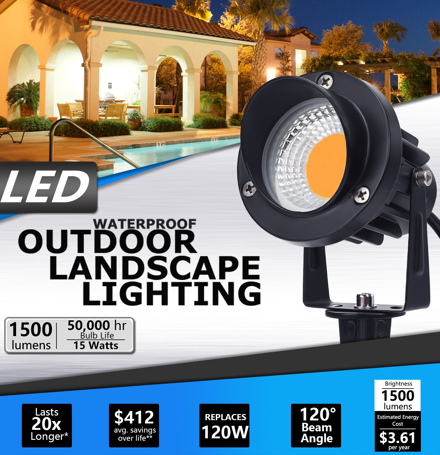 【Update 15W Landscape Lights Super Brightness Compared with others】2 Pack 15W LED Light, 1500 Lumen 3000K warm white great for illuminating your Patio, Garden Path Back Yard fences—Both make security and decoration with beautiful warm white landscape lighting.