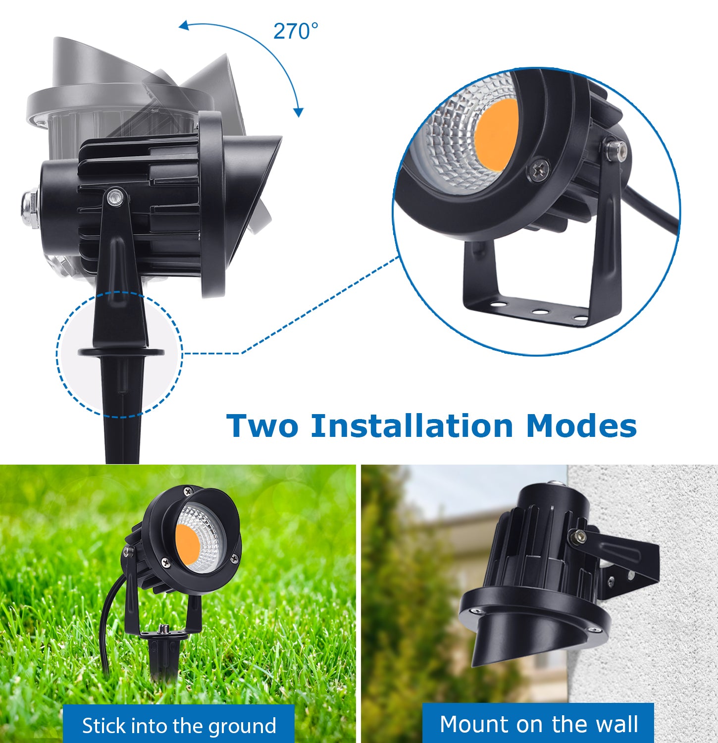【Widely Application】 60-degree beam Angle with 270 degree adjustable head ultra bright LED spot lights, can be widely used in gardens, path, lawn, courtyards, patios, driveways, outdoor decorative. Provide the best lighting and decoration for your yard, trees, flags, fences, signs, etc.