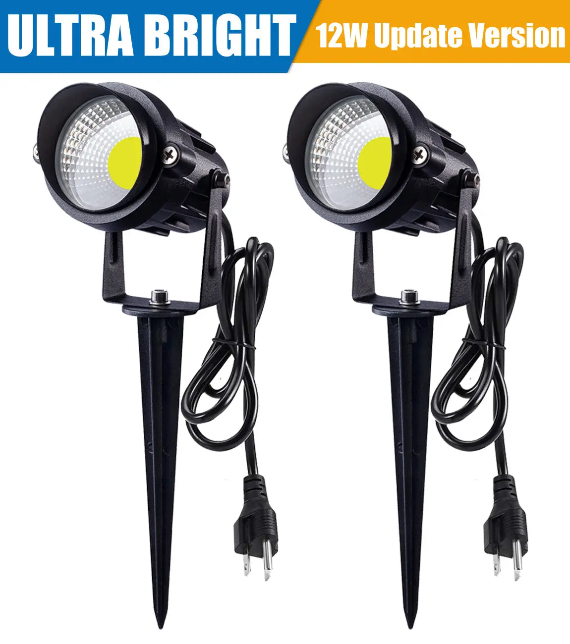 SUNVIE Outdoor Landscape LED Lighting 12W Waterproof Graden Lights COB Led Spotlights with Spiked Stand for Lawn Decorative Lamp US 3- Plug 6500K Daylight White (2 Packs)