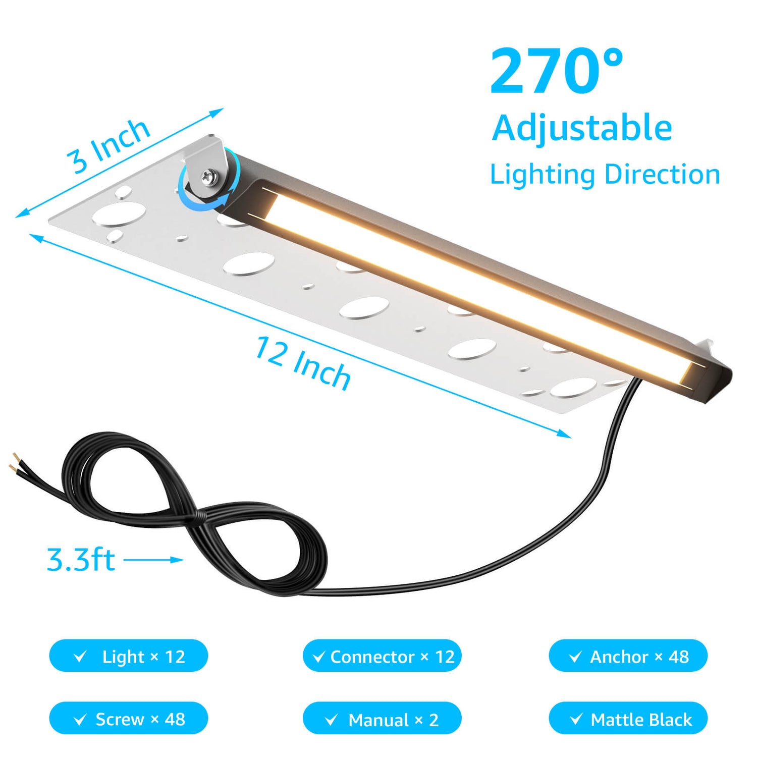 - 270° Adjustable Heads – Customize light direction for perfect wall-washing or accent lighting