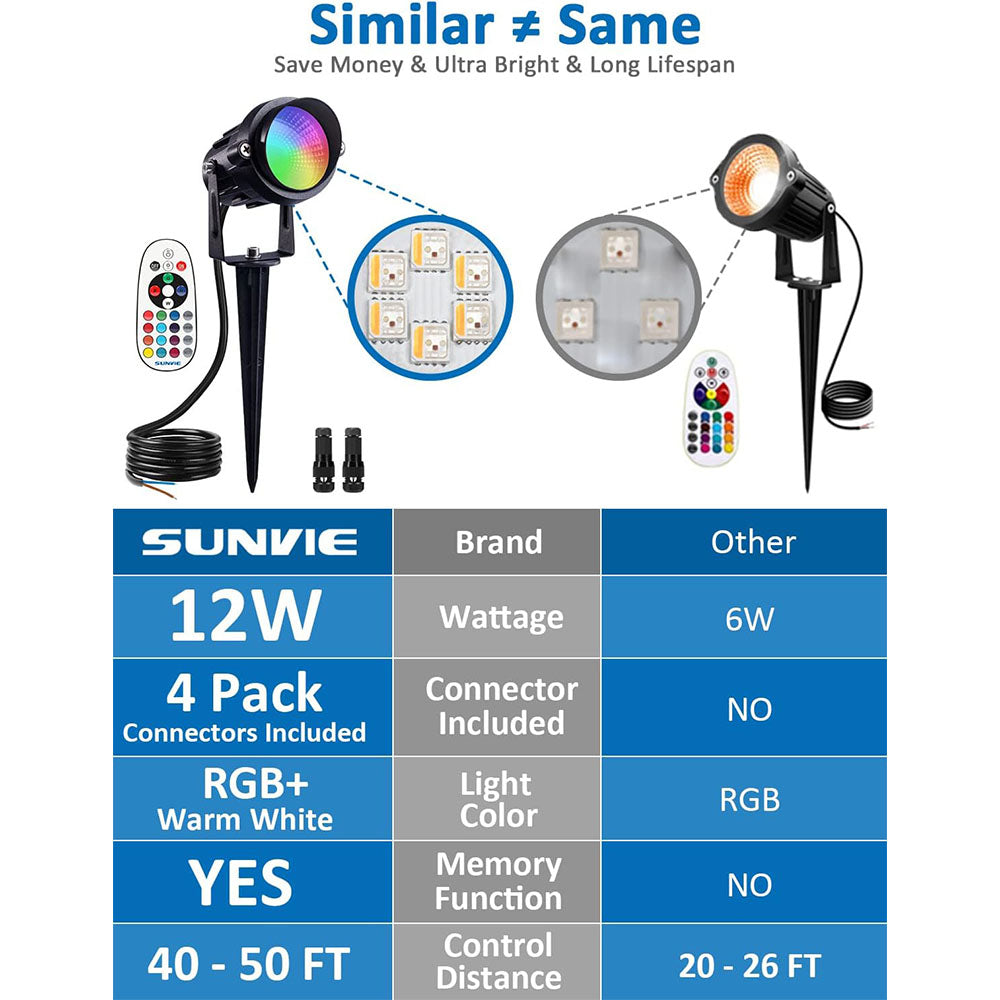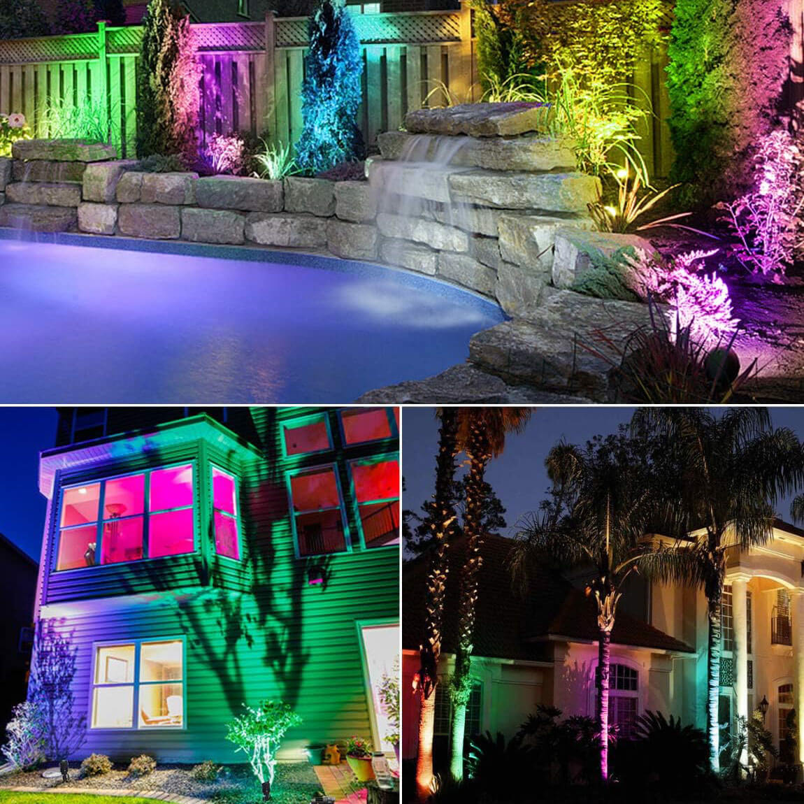 - Dynamic Lighting Set: Includes 2 12W RGB spotlights with 50,000 hours lifespan, RF remotes for easy color changes. Perfect for various outdoor settings and events like weddings and holidays.
