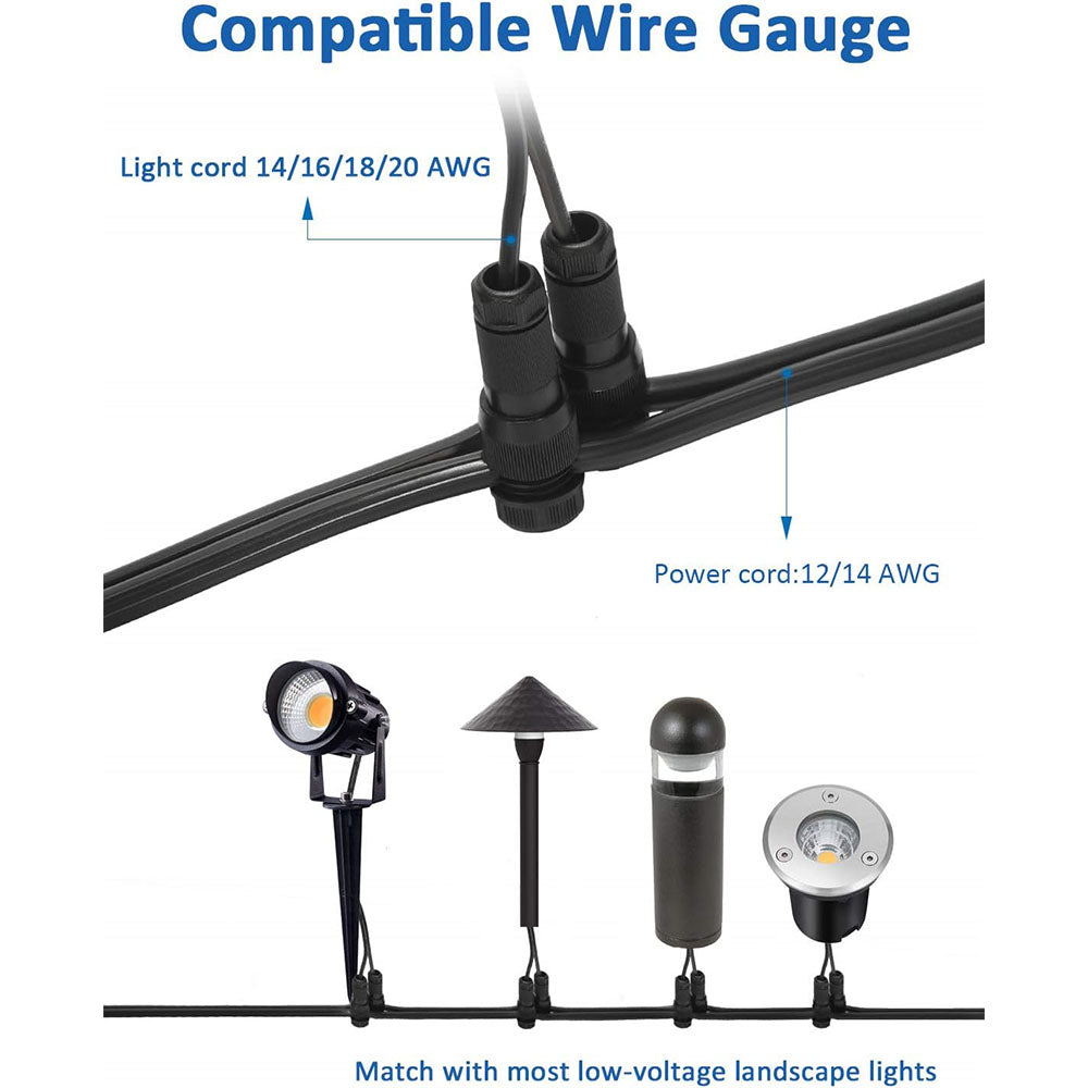 - Effortless Installation: Comes with 20 durable low voltage cable connectors for quick setup without tools. Connect cables to fixtures in minutes.