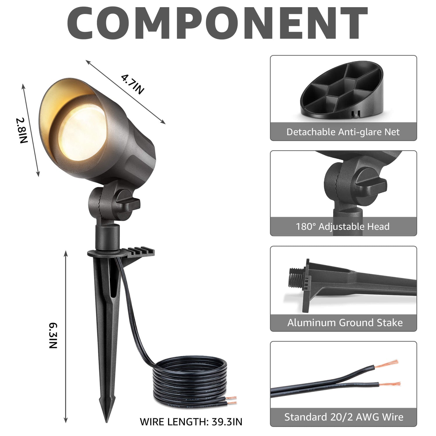 Versatile Outdoor Use: With a 90° beam angle and 180° adjustable heads, these lights are perfect for highlighting walls, trees, flags, fences, gardens, and pathways.
