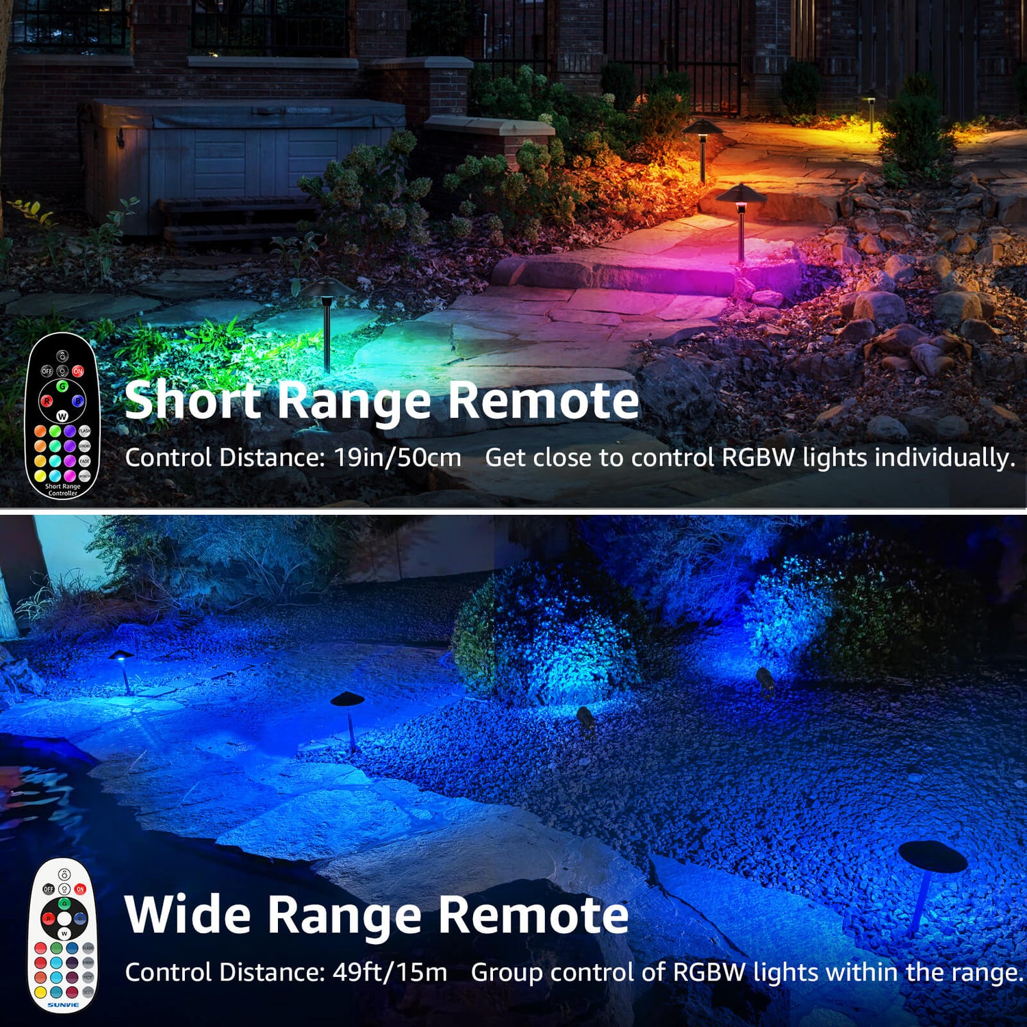 - Advanced Dual-Remote Control: Includes two remotes for ultimate flexibility. Use the short-range (19in) remote to set unique colors for each light, or the long-range (50ft) remote to synchronize all lights instantly.